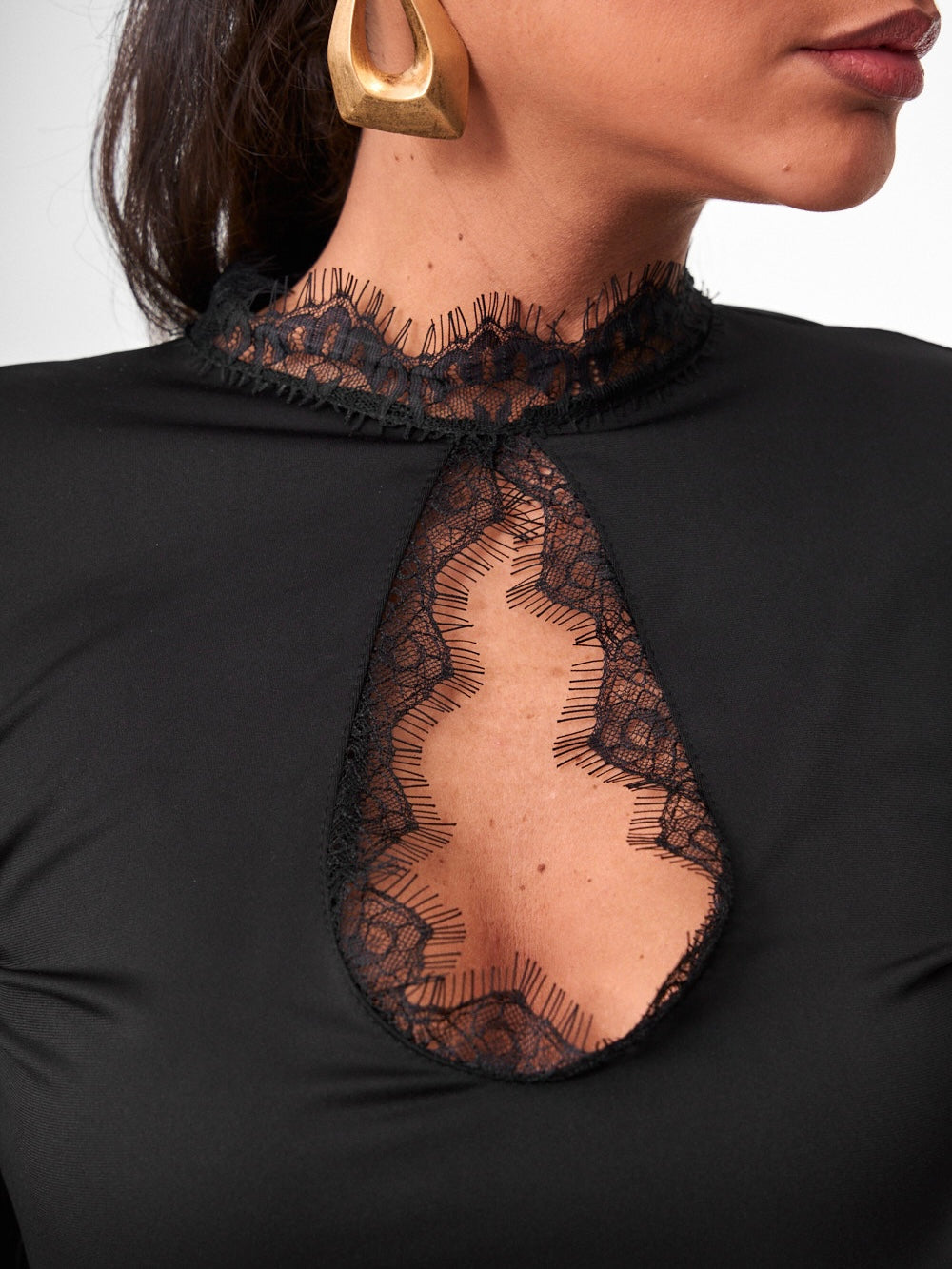 Abito con inserti in pizzo meraviglioso pensato per valorizzare la silhouette con una linea elegante e moderna, ideale per creare outfit femminili in ogni occasione.