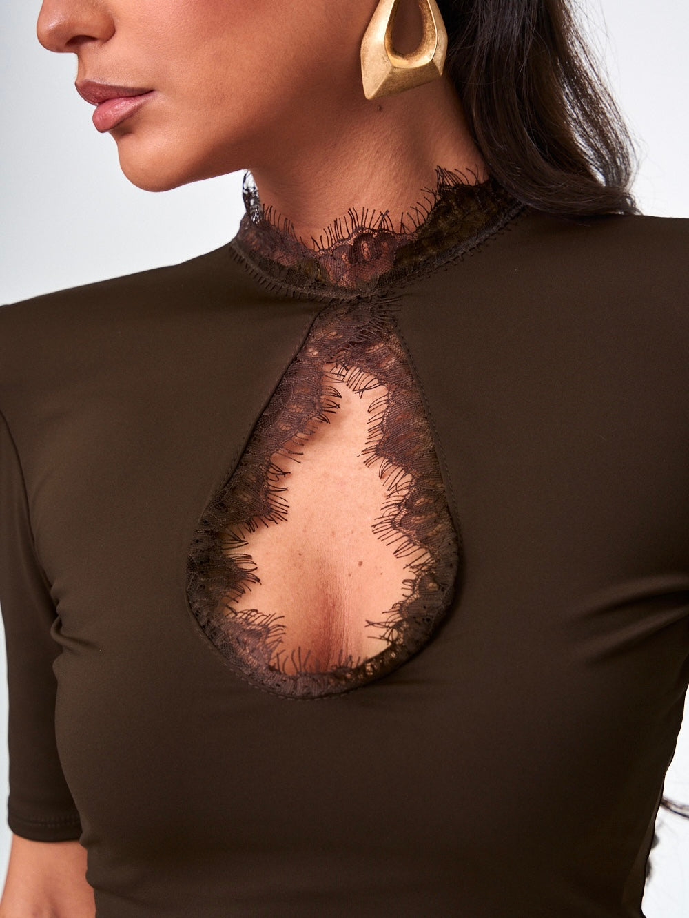 Abito con inserti in pizzo meraviglioso pensato per valorizzare la silhouette con una linea elegante e moderna, ideale per creare outfit femminili in ogni occasione.