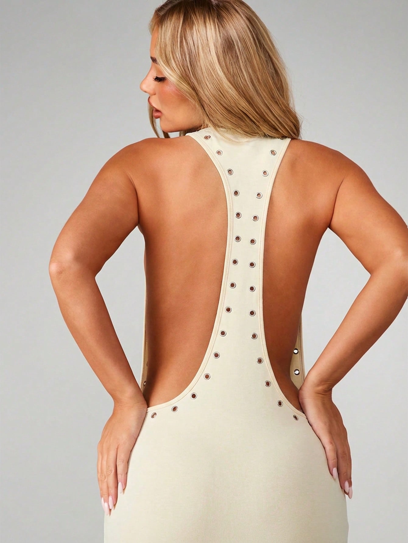 Abito lungo con borchie in design pensato per valorizzare la silhouette con una linea elegante e moderna, ideale per creare outfit pazzeschi.