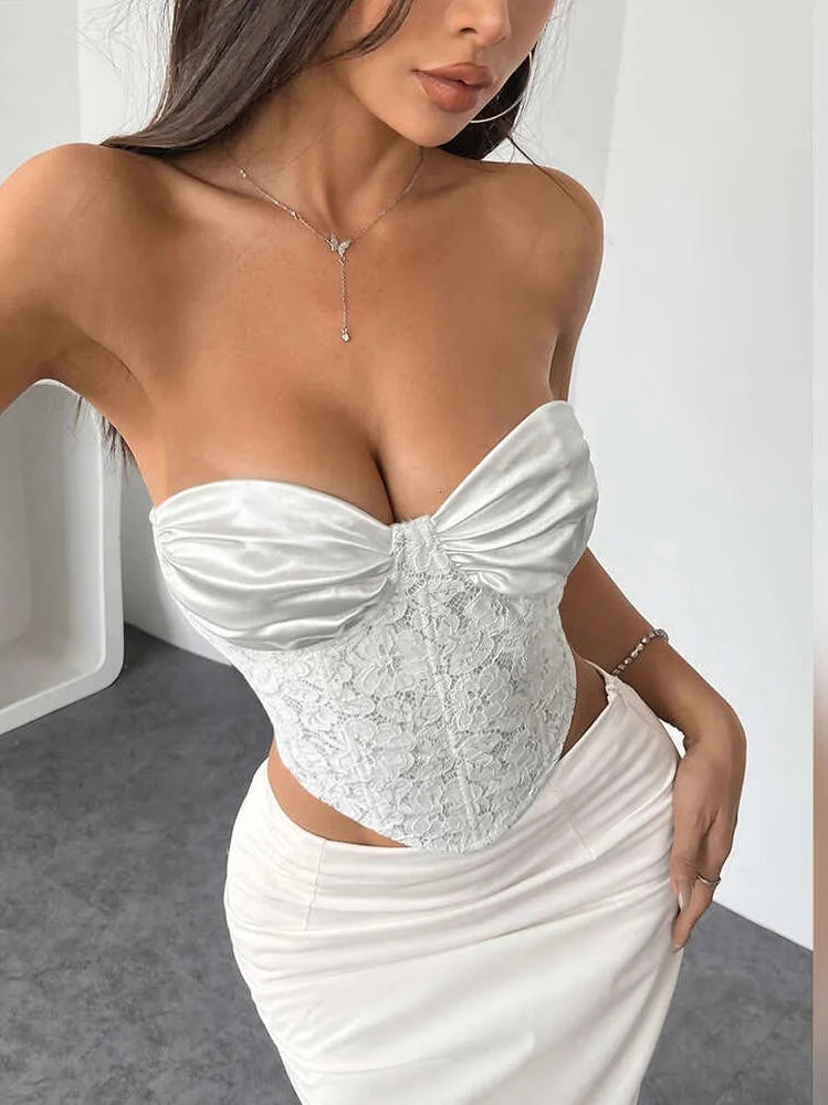 corpetto con una vestibilità elasticizzata e confortevole. Presenta delle magnifiche cuciture, bellissime trasparenze in parte in pizzo e in parte in tessuto setoso.