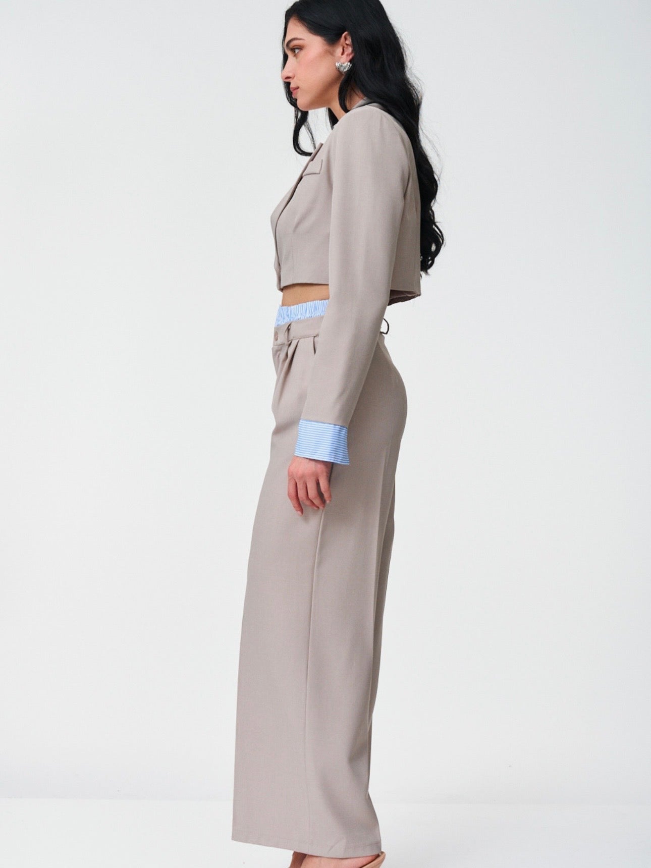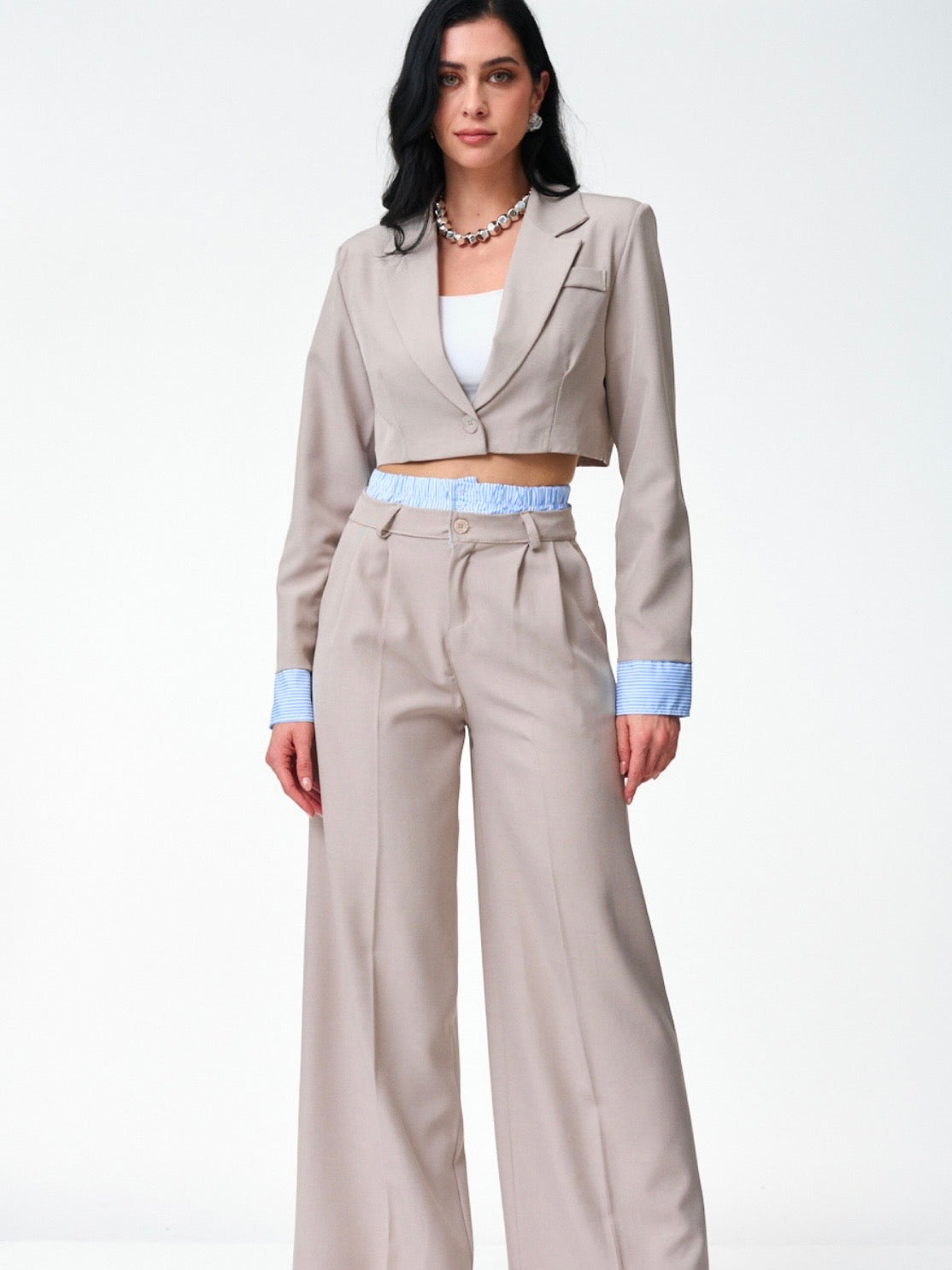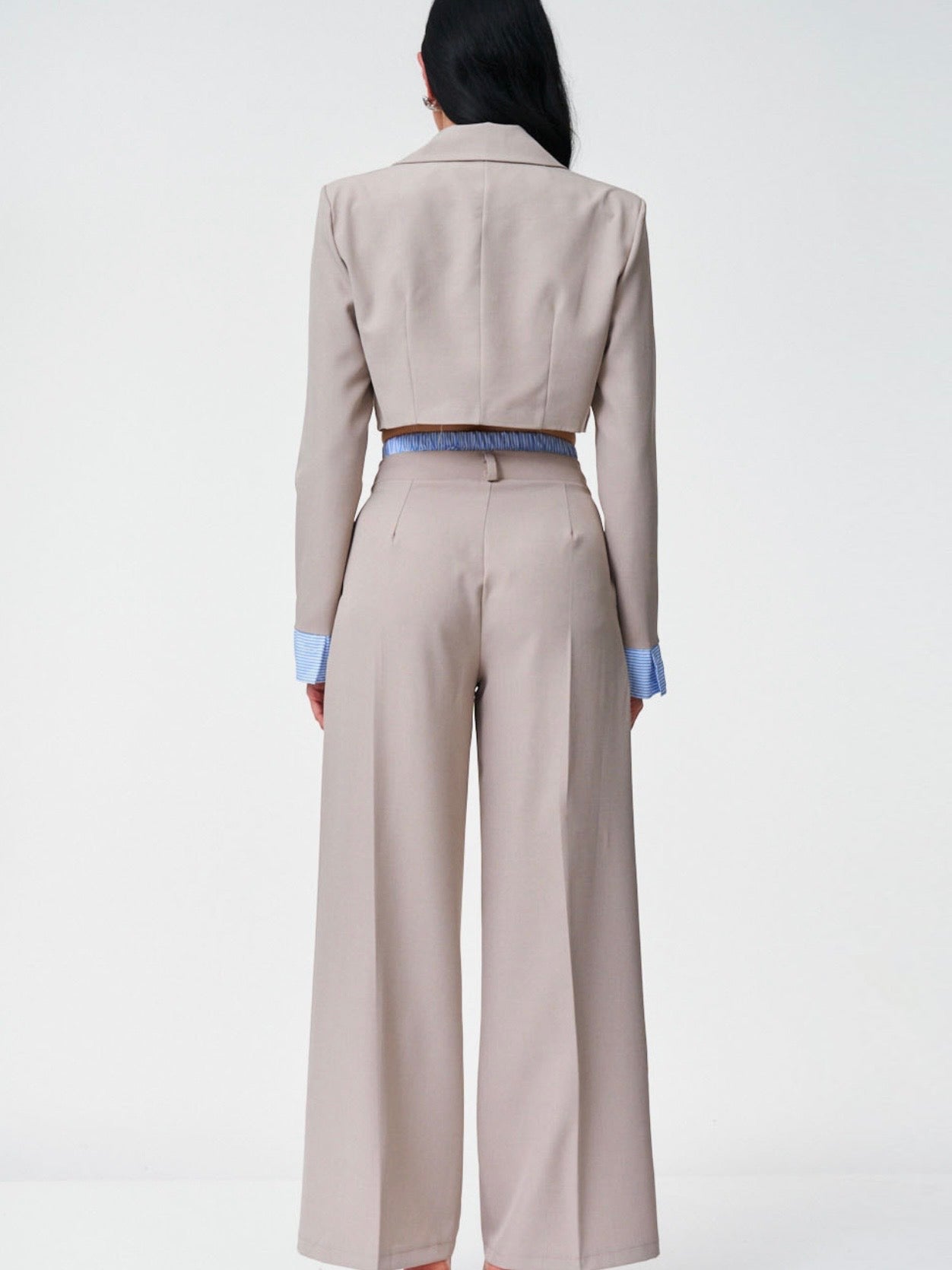 Completo dal taglio femminile e contemporaneo, pensato per slanciare la silhouette e creare un look completo in un solo gesto.
