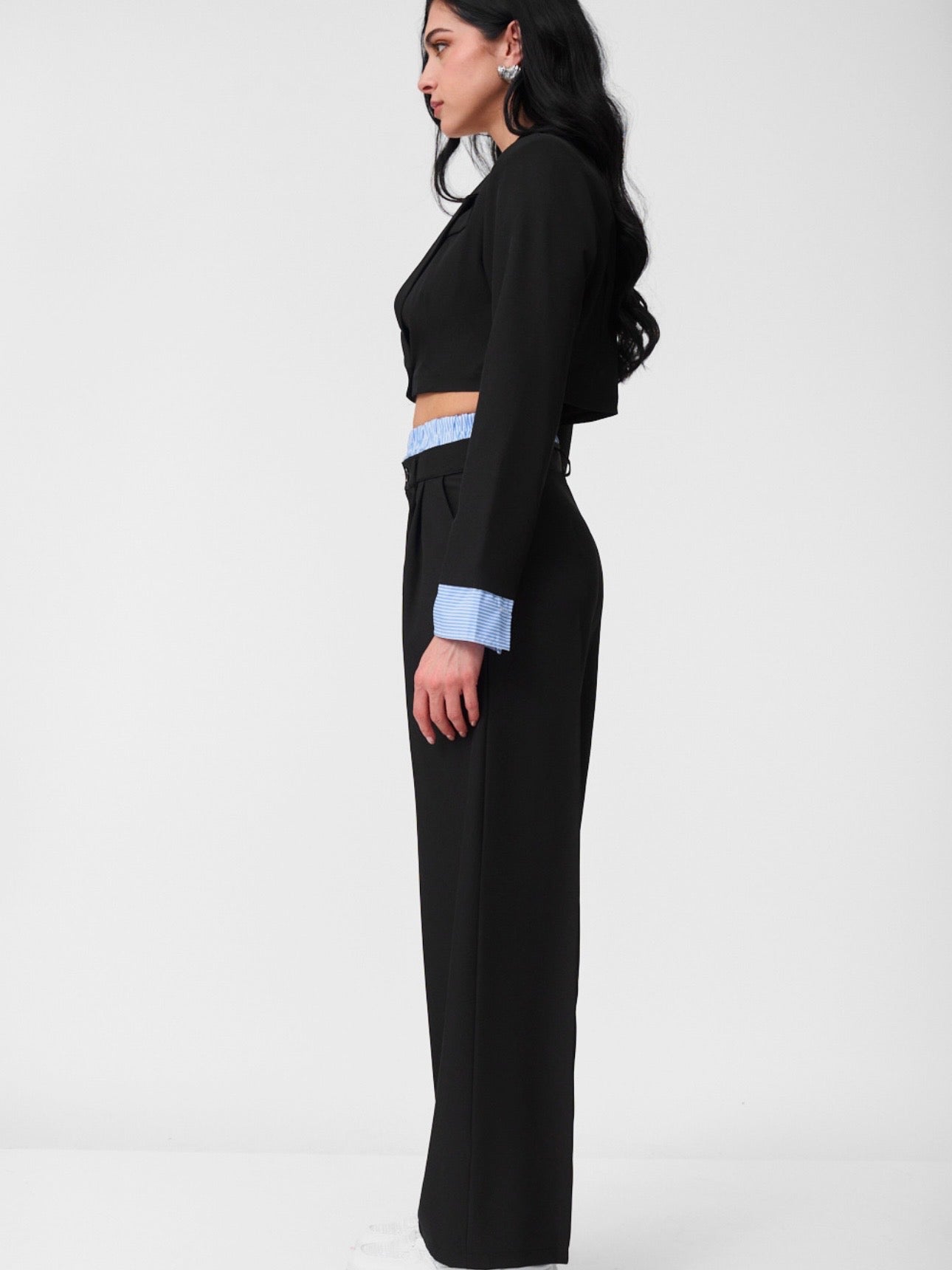 Completo dal taglio femminile e contemporaneo, pensato per slanciare la silhouette e creare un look completo in un solo gesto.