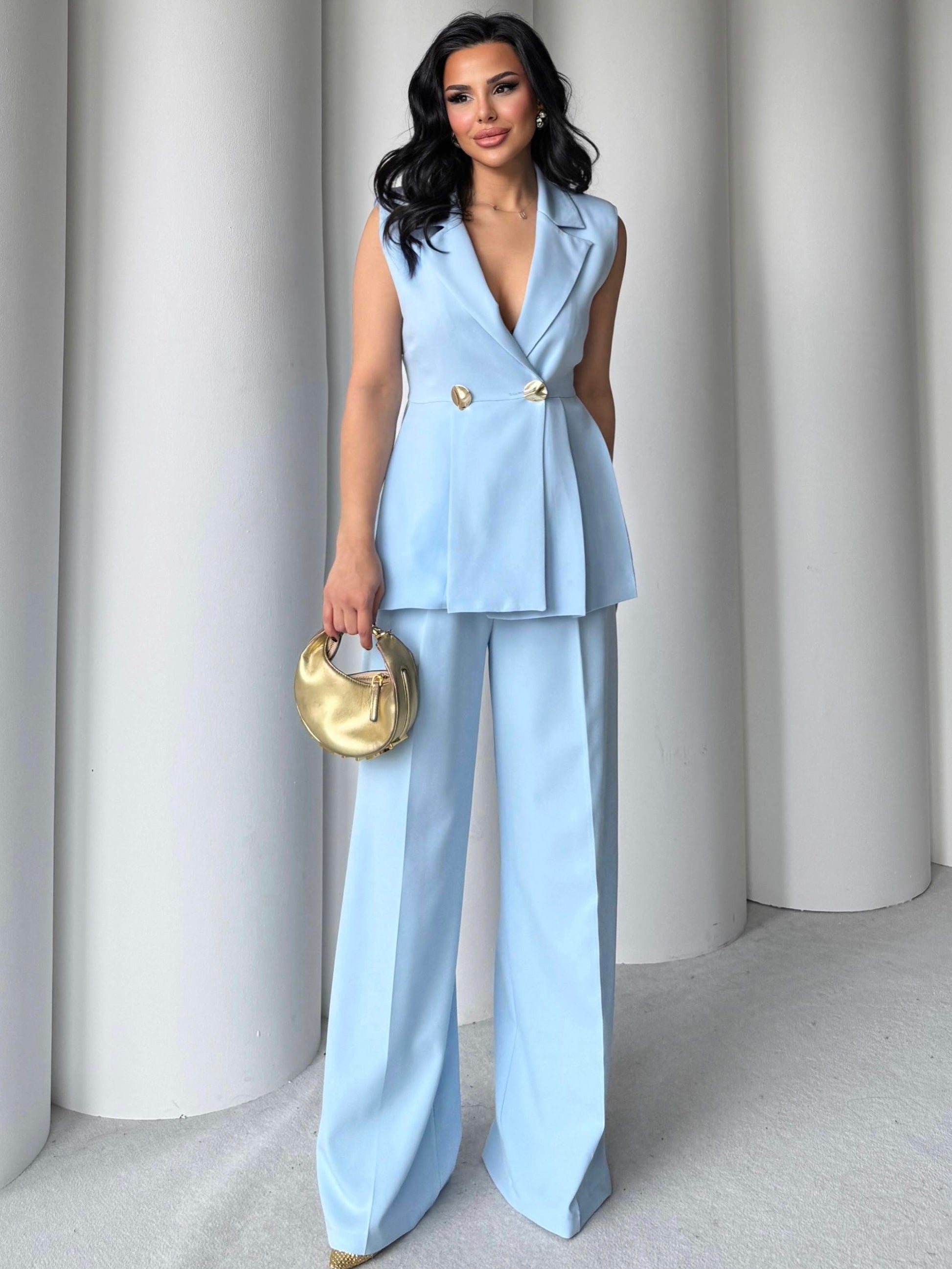 Tuta dal taglio femminile e contemporaneo, pensata per slanciare la silhouette e creare un look completo in un solo gesto.
