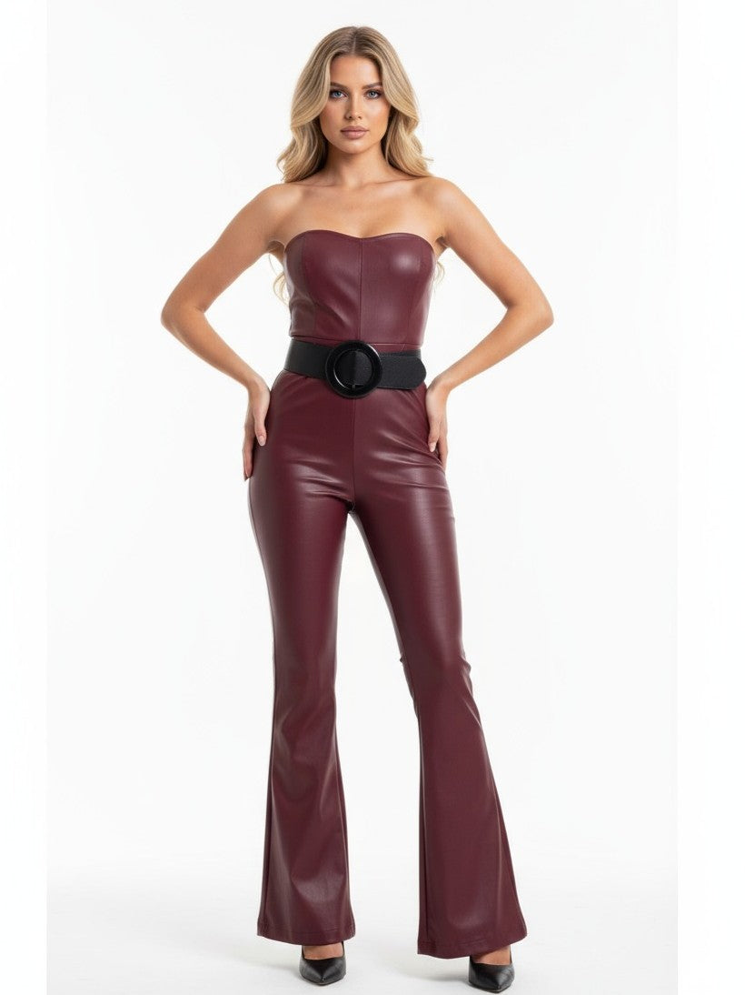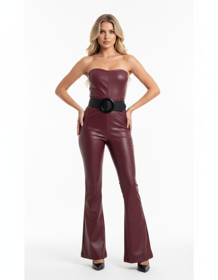 Tuta elasticizzato con vestibilità morbida, tessuto in ecopelle di alta qualità. Un capo versatile assolutamente da non perdere! La cintura non è inclusa.