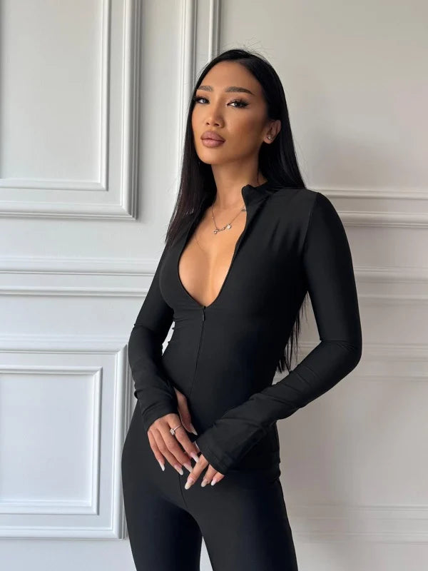 Tuta dal taglio femminile e contemporaneo, pensata per slanciare la silhouette e creare un look completo in un solo gesto.